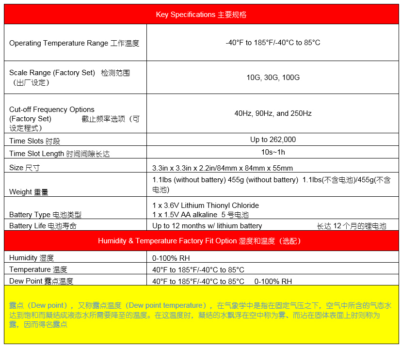 是一個非常耐用結(jié)實的沖擊記錄器,可以配置它來監(jiān)視關(guān)鍵參數(shù),提供一個明確無誤的警告,