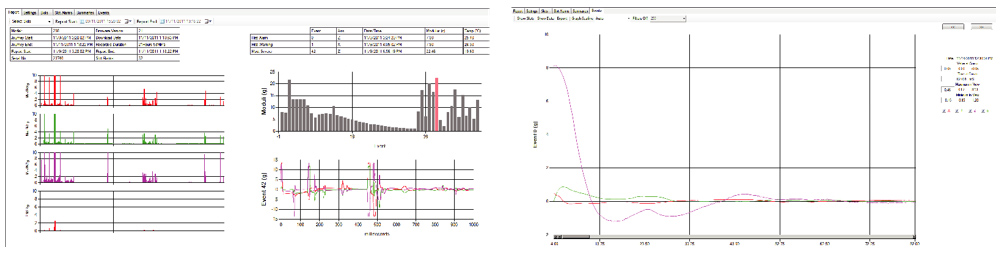 Built in reporting tools allow you to see impacts over time as well as a histogram of the number of impacts in predetermined