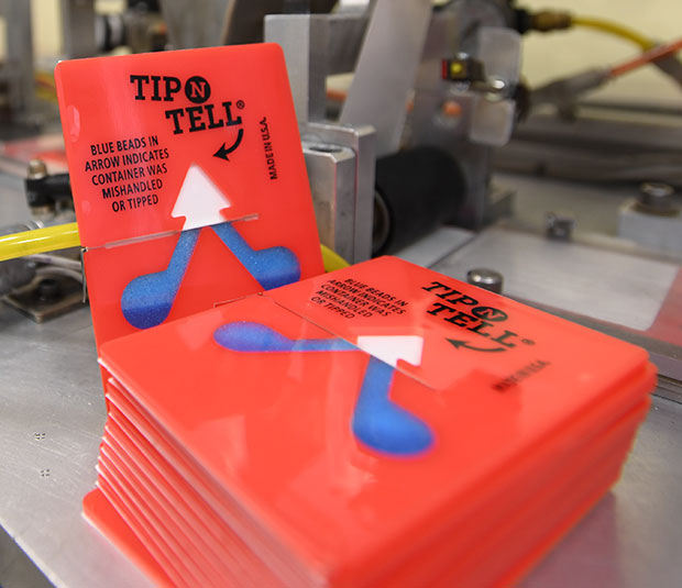 美國生產(chǎn)商制造的TIP N TELL產(chǎn)品,中文名為防傾貼標(biāo)簽(以下簡稱),別名為傾斜標(biāo)貼、傾斜顯示貼、傾斜感知器、防傾斜顯示器等。